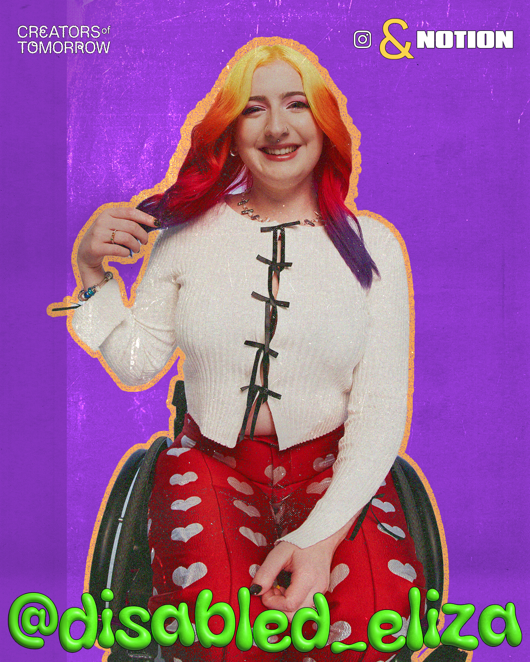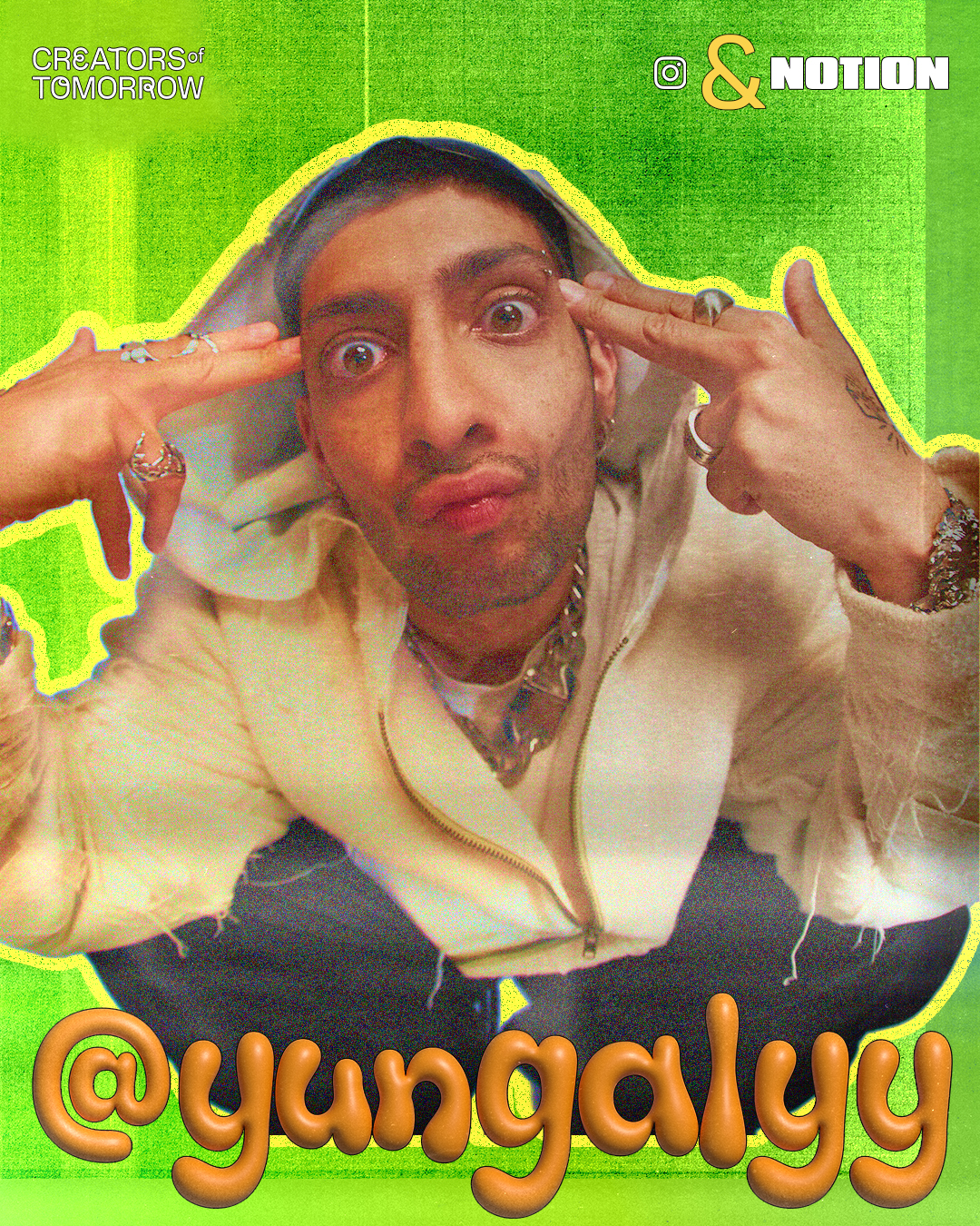 The selected “Creators of Tomorrow”, use a variety of techniques in producing their content whether it’s studio-produced or raw and unfiltered, right from their bedrooms. This blend inspired our aesthetic, which is a harmonious fusion of sleek, professional execution through its layout and thematic playfulness through the font choices, quirky animation style, 3D stickers and colour palette.