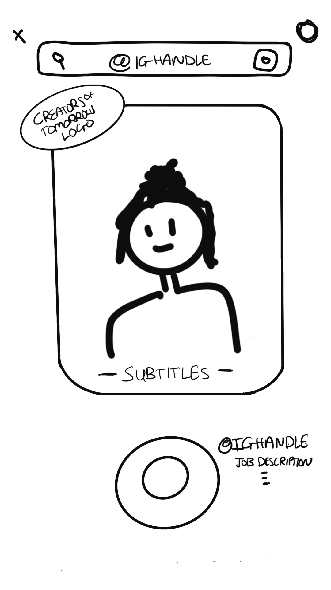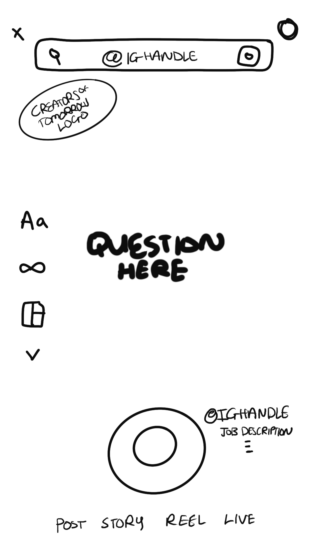 In-line with the top design trends this year, we opted for a bento-box format to hold the IG Handle and video of each creator. We also wanted to integrate Instagram’s UI (icons and recording button) so that the entire template felt native to the app and its familiar functionality.